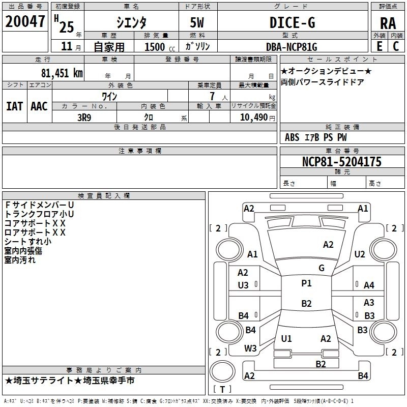 TOYOTA SIENTA 2013 г., лот № 20047