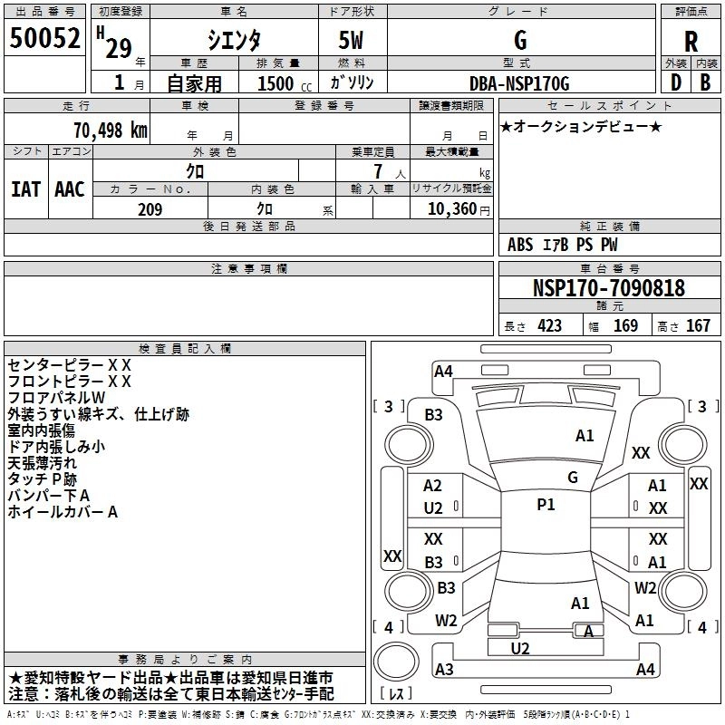 TOYOTA SIENTA 2017 г., лот № 50052