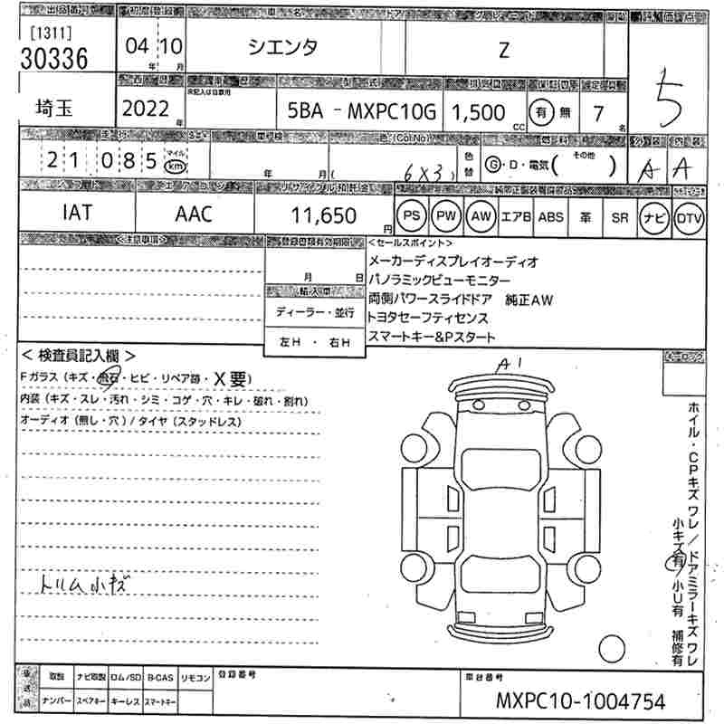 TOYOTA SIENTA 2022 г., лот № 30336