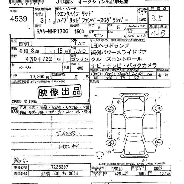 Статус не продан Лот 4539 Аукцион JU Tochigi Дата аукциона 23.01.2026