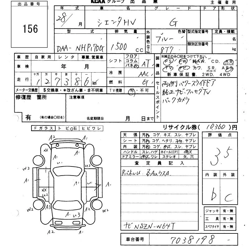 TOYOTA SIENTA 2016 г., лот № 156