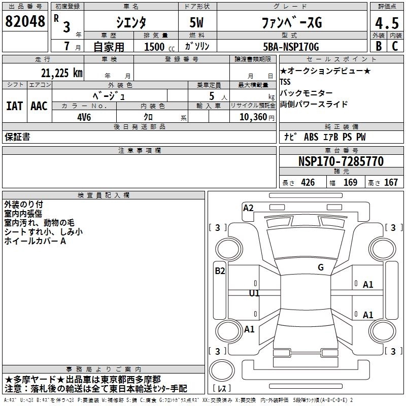 TOYOTA SIENTA 2021 г., лот № 82048