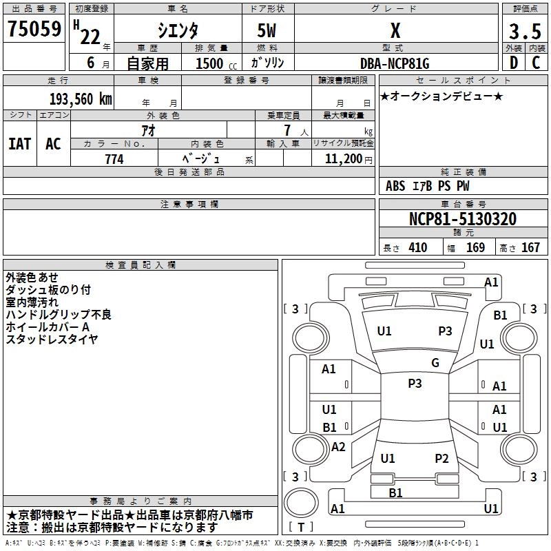 Год выпуска2010 Пробег 194 000 км КузовNCP81G КомплектацияX