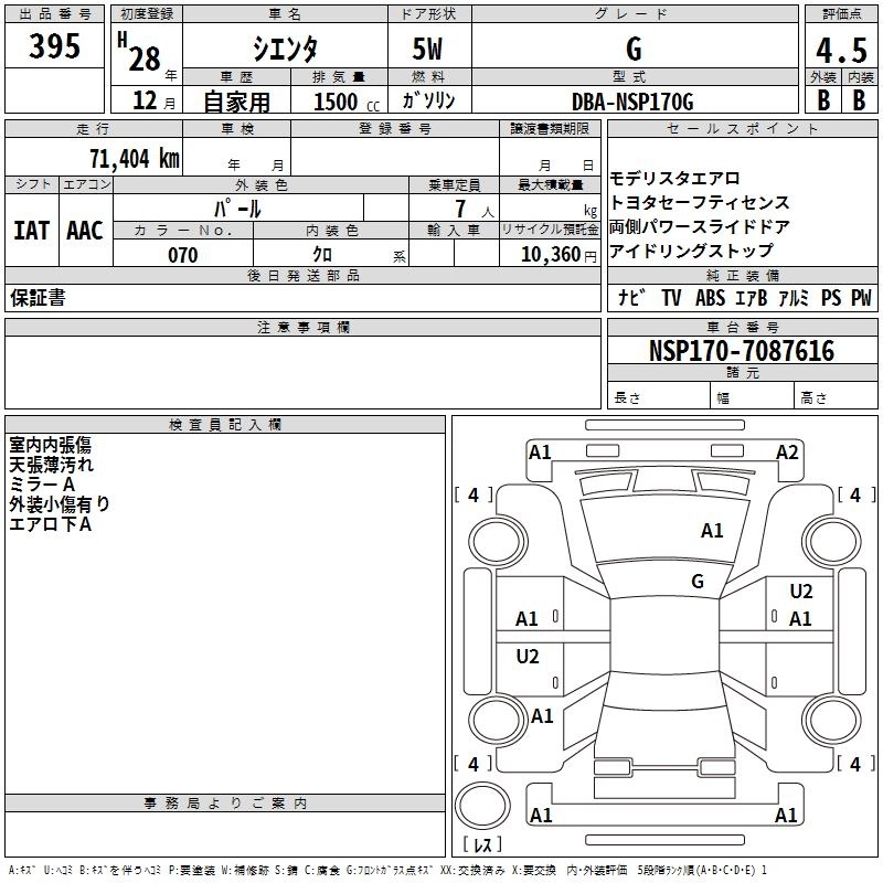 TOYOTA SIENTA 2016 г., лот № 395