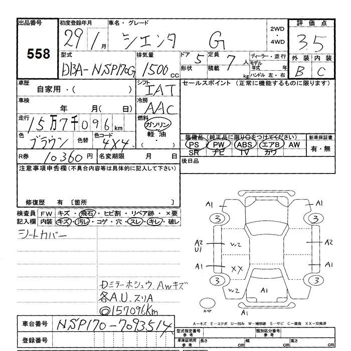 TOYOTA SIENTA 2017 г., лот № 558