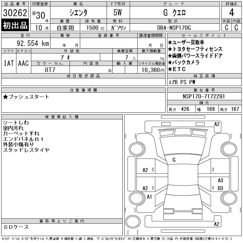 TOYOTA SIENTA 2018 г., лот № 30262
