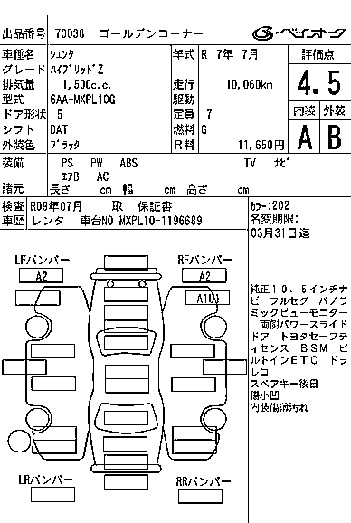 TOYOTA SIENTA 2025 г., лот № 70038