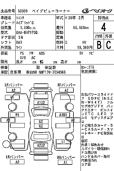 TOYOTA SIENTA 2016 г., лот № 50039