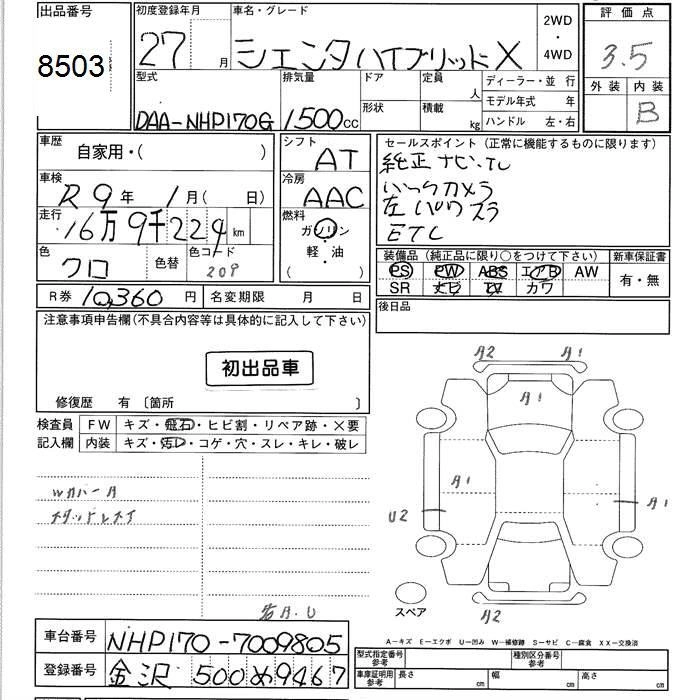 TOYOTA SIENTA 2015 г., лот № 8503