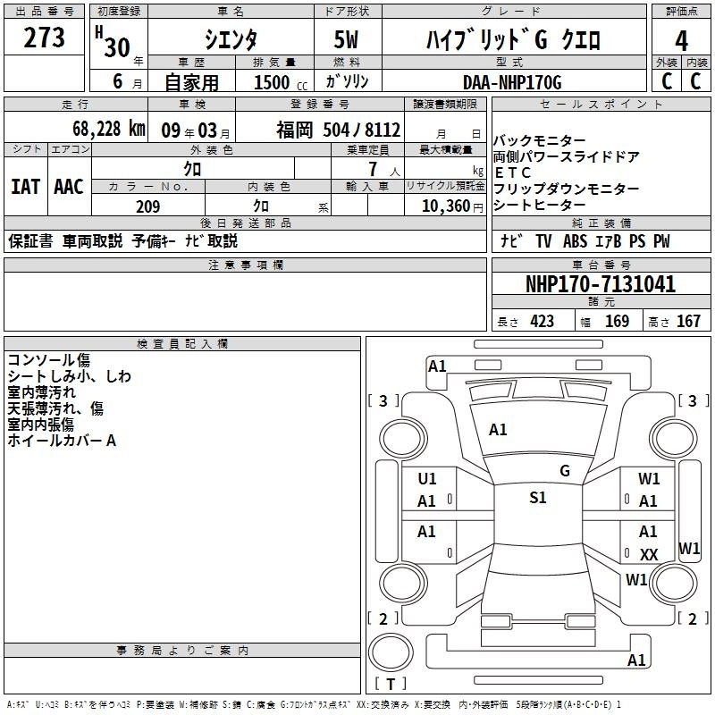 TOYOTA SIENTA 2018 г., лот № 273