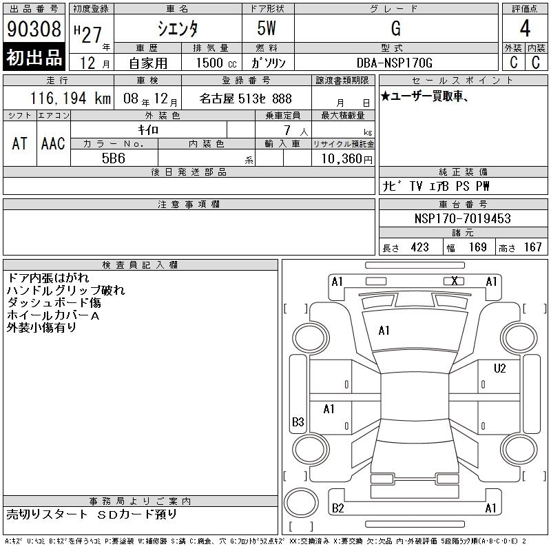 TOYOTA SIENTA 2015 г., лот № 90308
