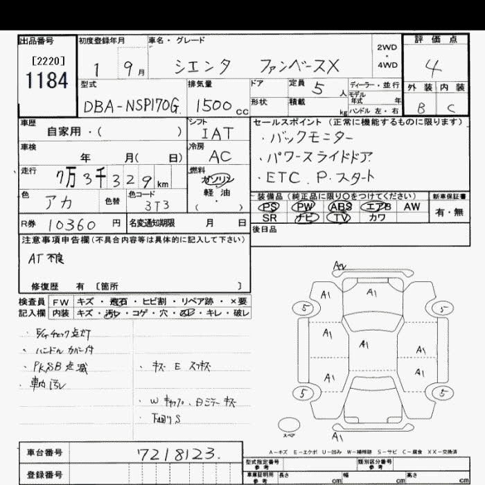 TOYOTA SIENTA 2019 г., лот № 1184