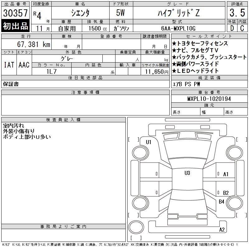 Статус выставлен на аукцион Лот 30357 Аукцион CAA Chubu Дата аукциона 11.03.2026