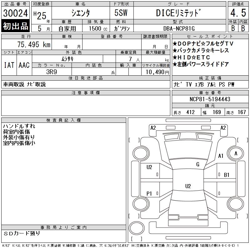 Год выпуска2013 Пробег 75 000 км КузовNCP81G КомплектацияDICE LIMITED
