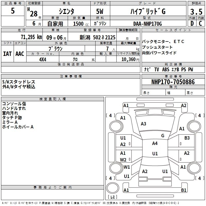 TOYOTA SIENTA 2016 г., лот № 5