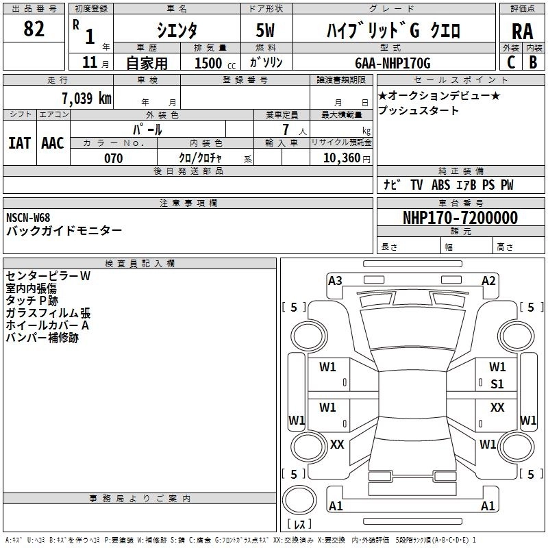 TOYOTA SIENTA 2019 г., лот № 82