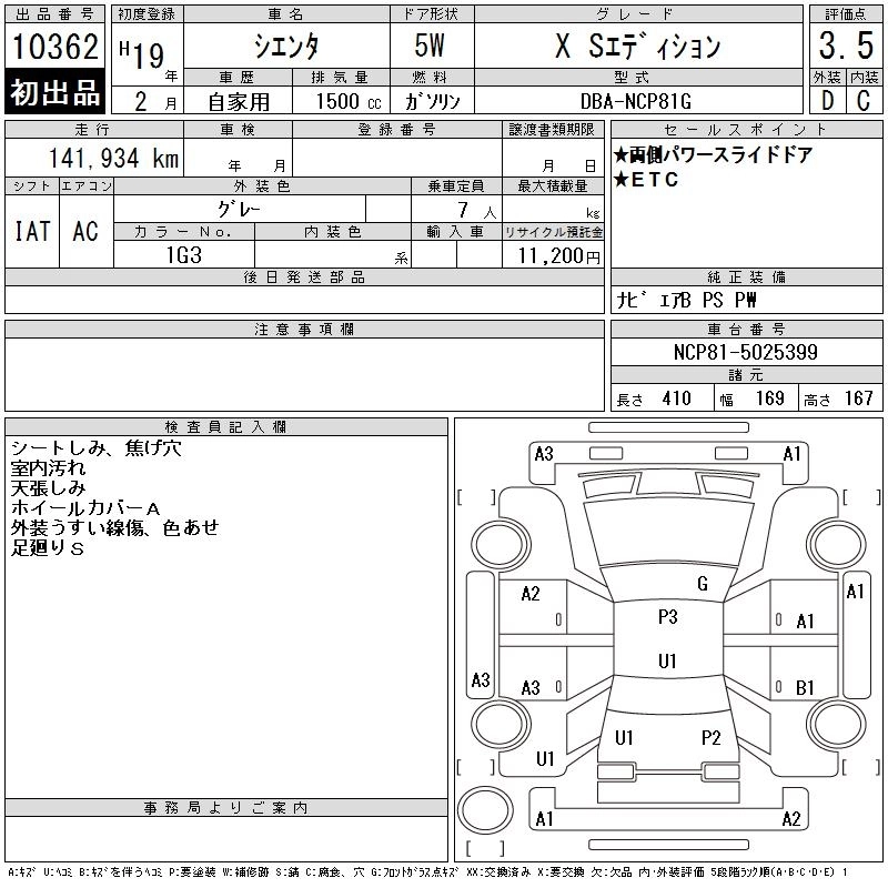 TOYOTA SIENTA 2007 г., лот № 10362