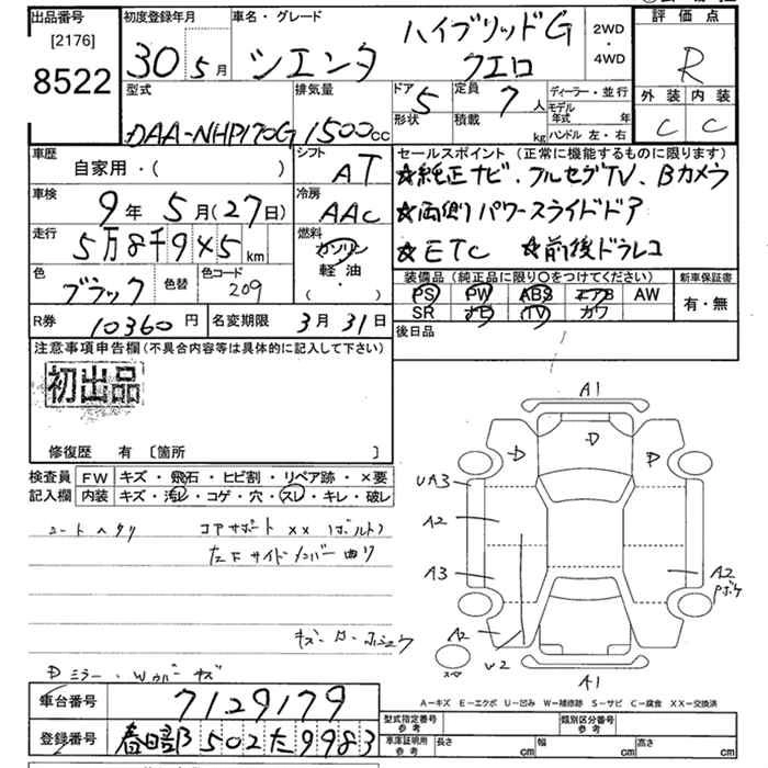 TOYOTA SIENTA 2018 г., лот № 8522