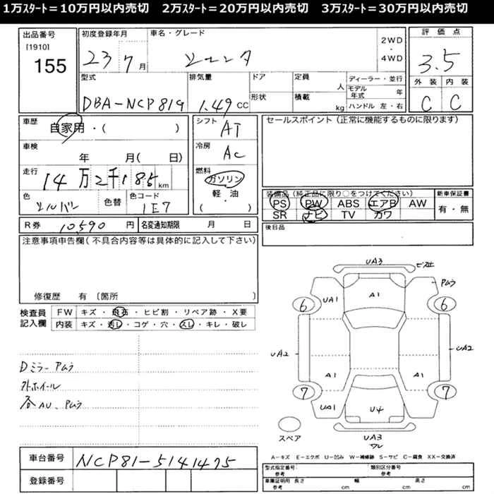 Год выпуска2011 Пробег 142 000 км КузовNCP81G