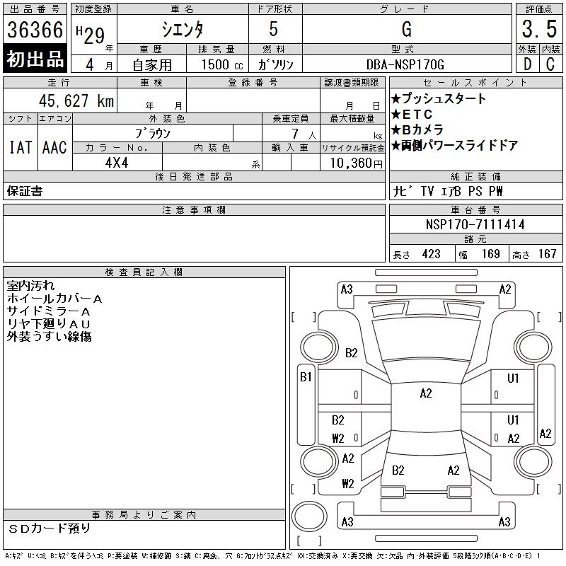 TOYOTA SIENTA 2017 г., лот № 36366