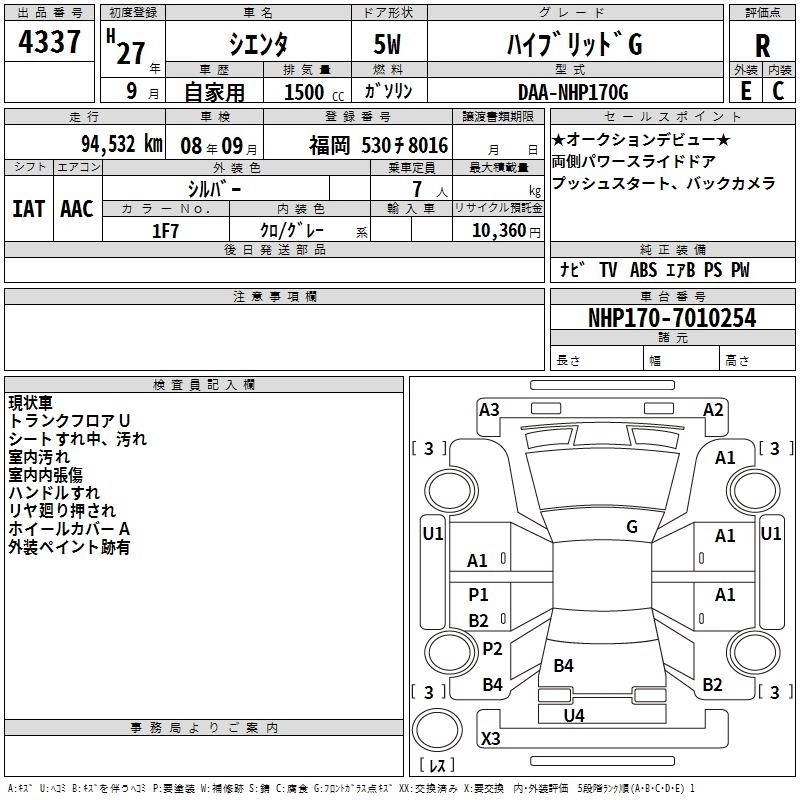 TOYOTA SIENTA 2015 г., лот № 4337