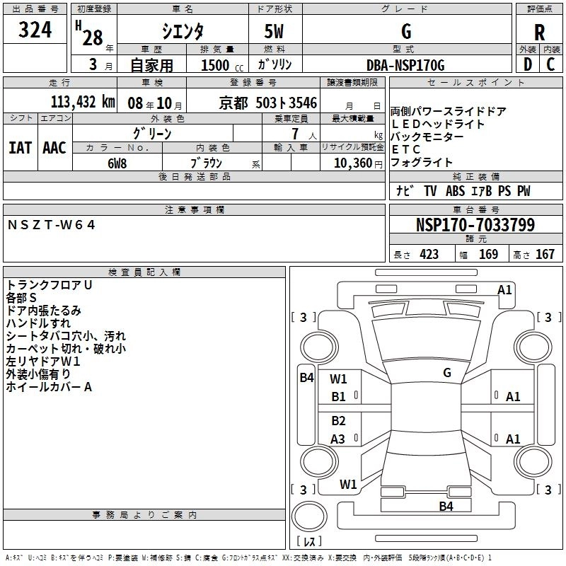 TOYOTA SIENTA 2016 г., лот № 324