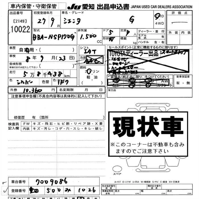 Статус выставлен на аукцион Лот 10022 Аукцион JU Aichi Дата аукциона 12.03.2026