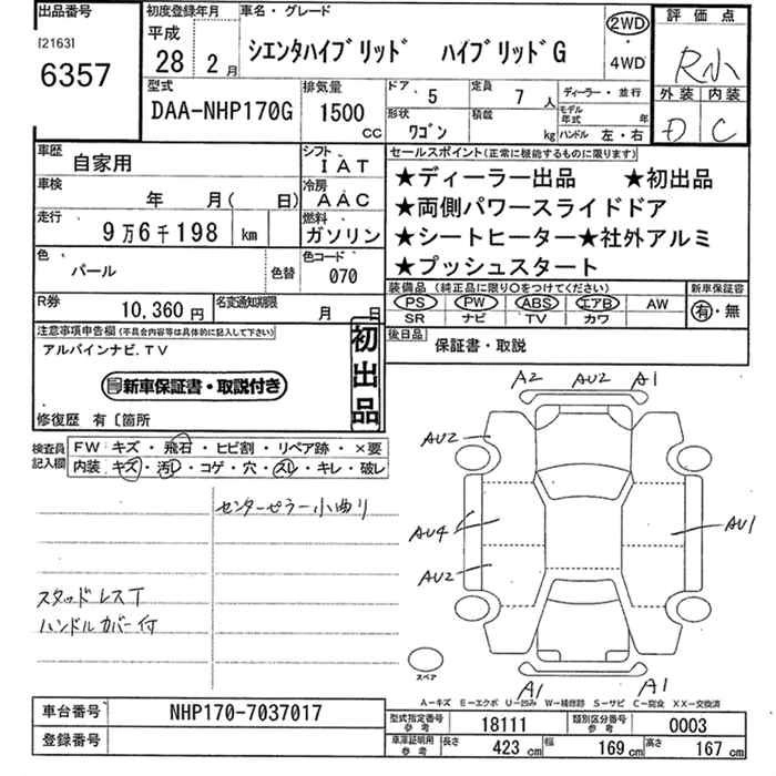 TOYOTA SIENTA 2016 г., лот № 6357