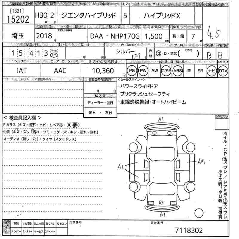 TOYOTA SIENTA 2018 г., лот № 15202