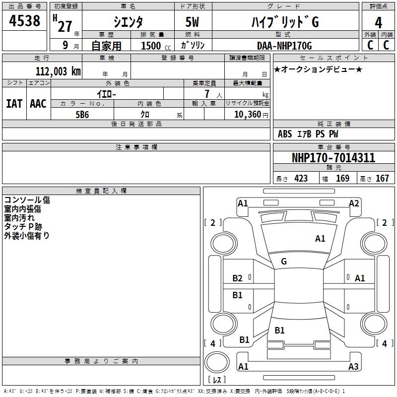Статус выставлен на аукцион Лот 4538 Аукцион TAA Chubu Дата аукциона 12.03.2026