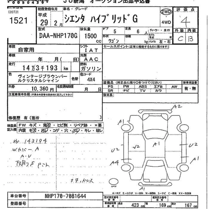 TOYOTA SIENTA 2017 г., лот № 1521