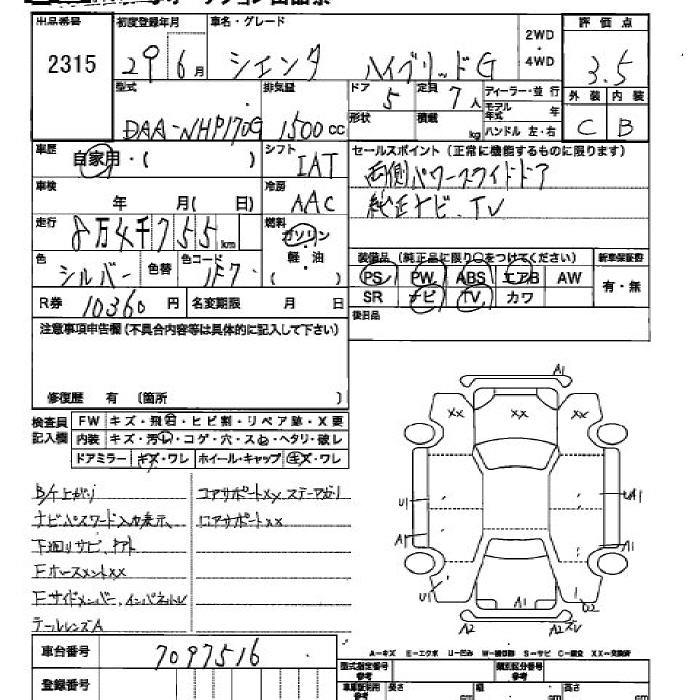 TOYOTA SIENTA 2017 г., лот № 2315