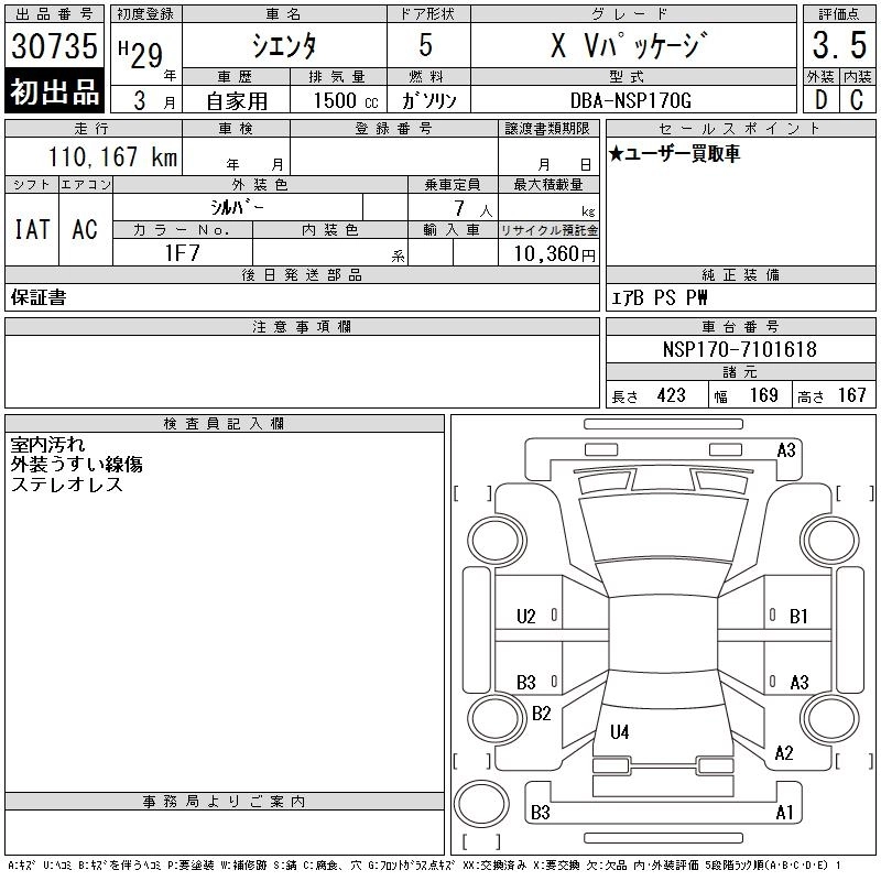 Год выпуска2017 Пробег 110 000 км КузовNSP170G КомплектацияX V PACKAGE