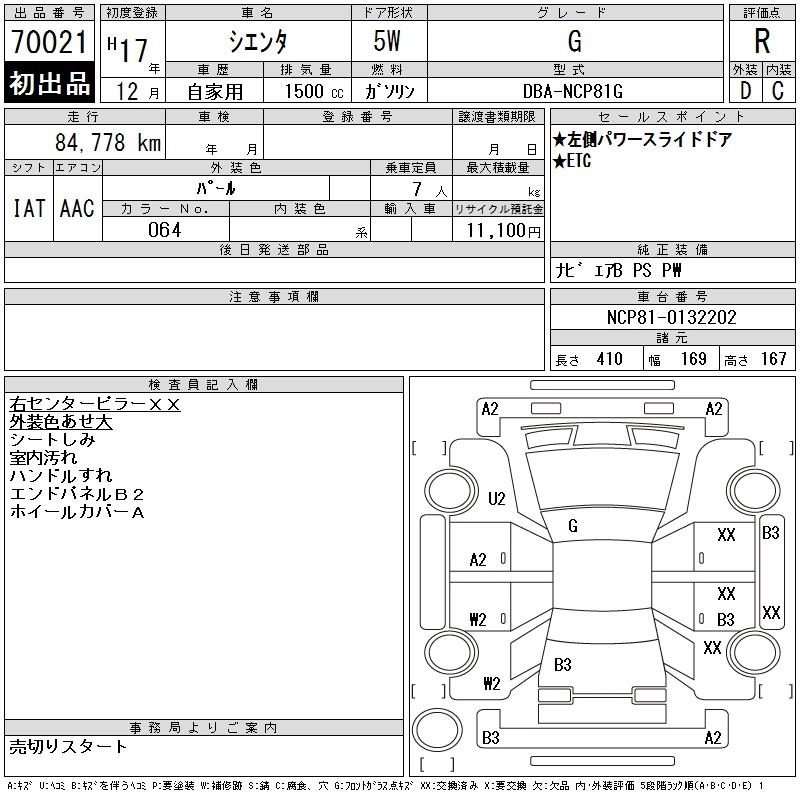 TOYOTA SIENTA 2005 г., лот № 70021