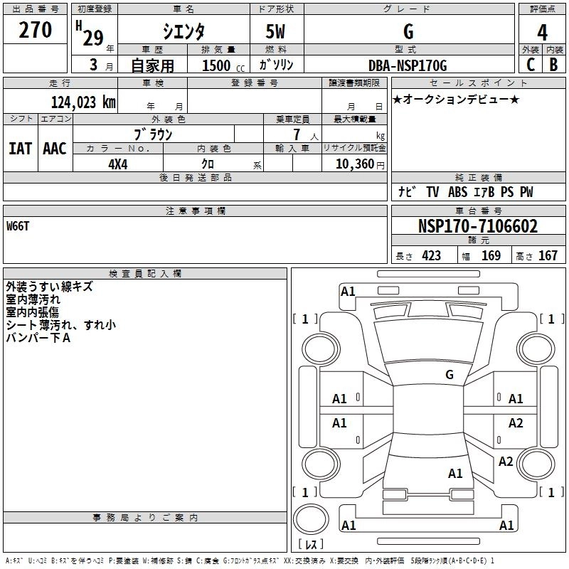 TOYOTA SIENTA 2017 г., лот № 270