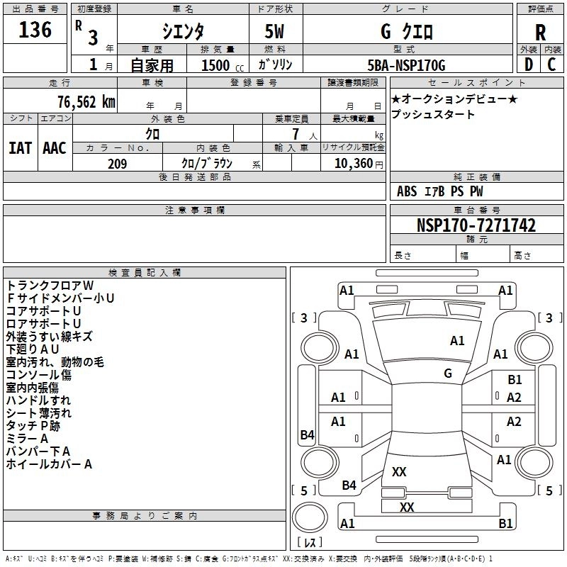 TOYOTA SIENTA 2021 г., лот № 136