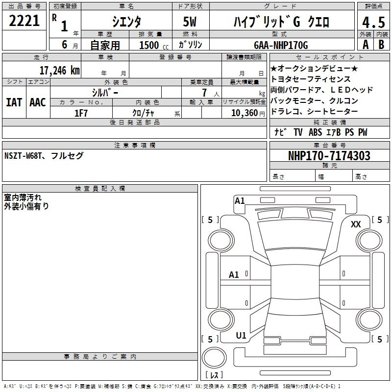 TOYOTA SIENTA 2019 г., лот № 2221