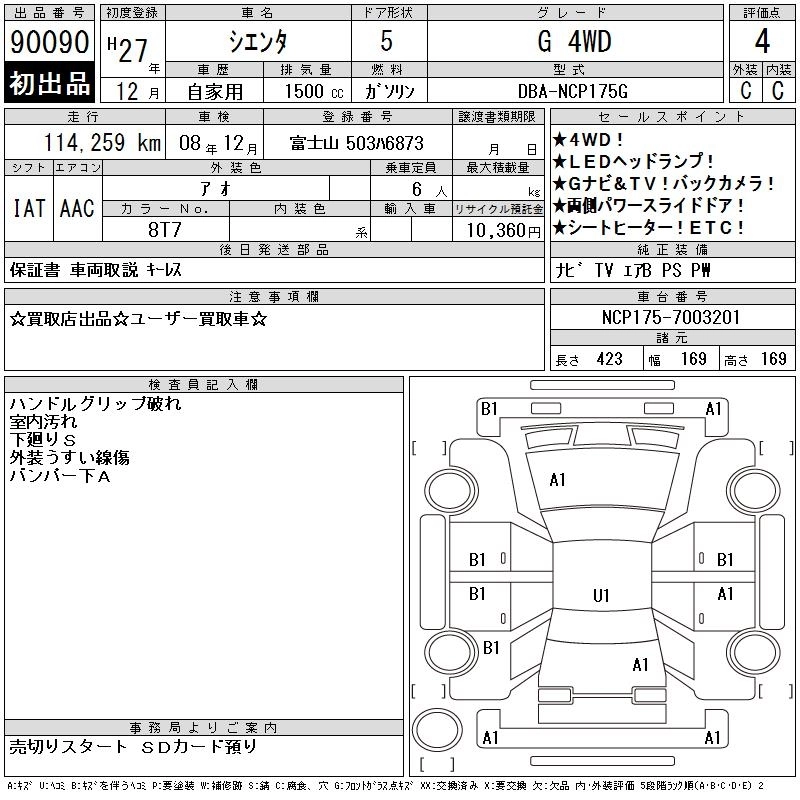 TOYOTA SIENTA 2015 г., лот № 90090