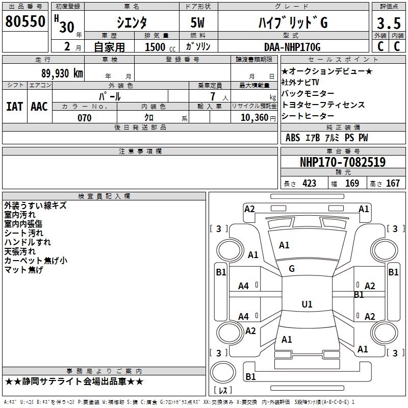 TOYOTA SIENTA 2018 г., лот № 80550