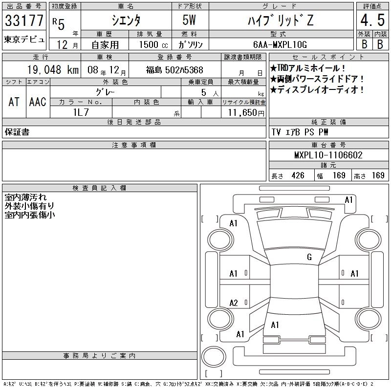 TOYOTA SIENTA 2023 г., лот № 33177