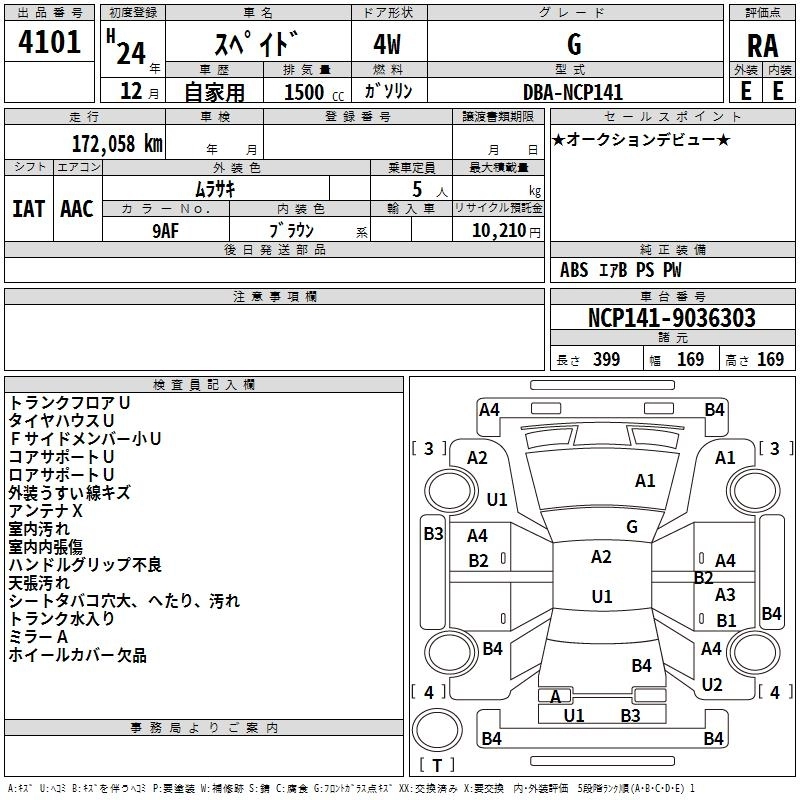TOYOTA SPADE 2012 г., лот № 4101
