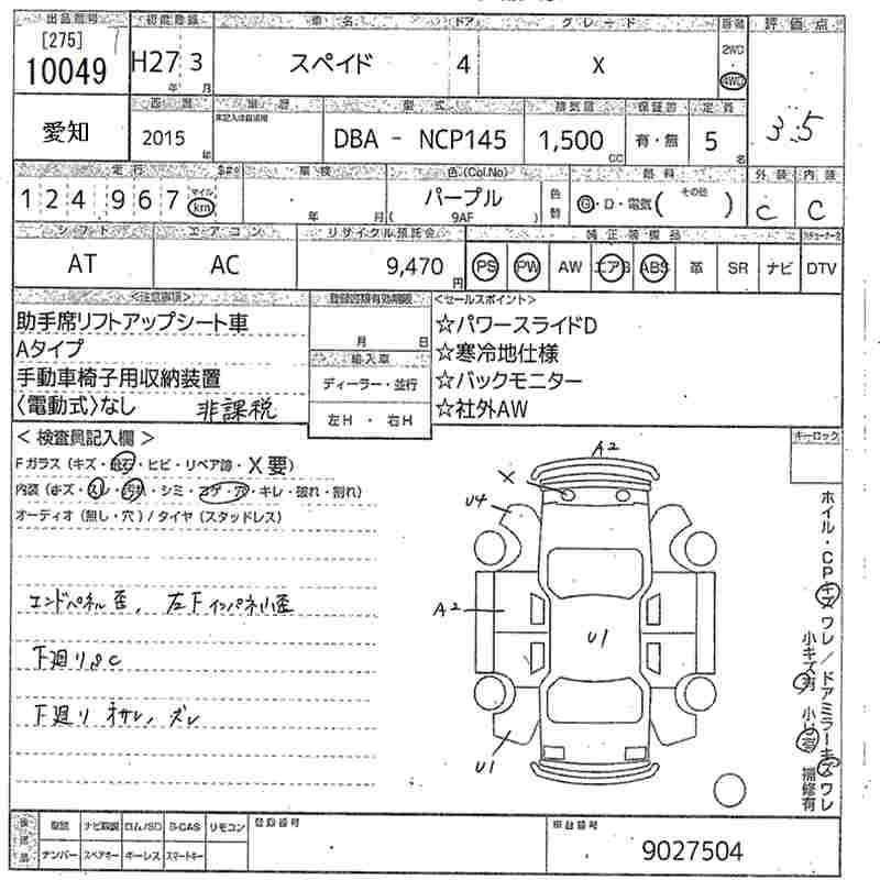 TOYOTA SPADE 2015 г., лот № 10049