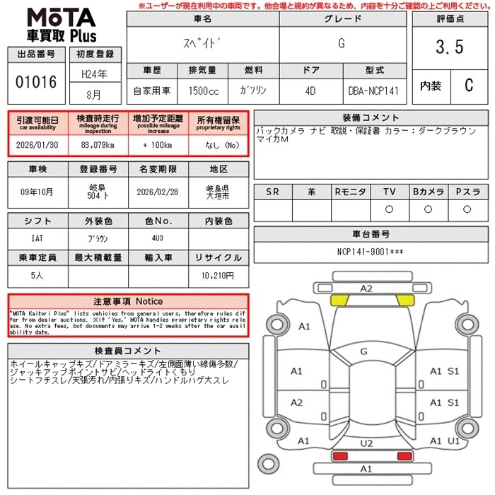 Год выпуска2012 Пробег 83 000 км КузовNCP141 КомплектацияG
