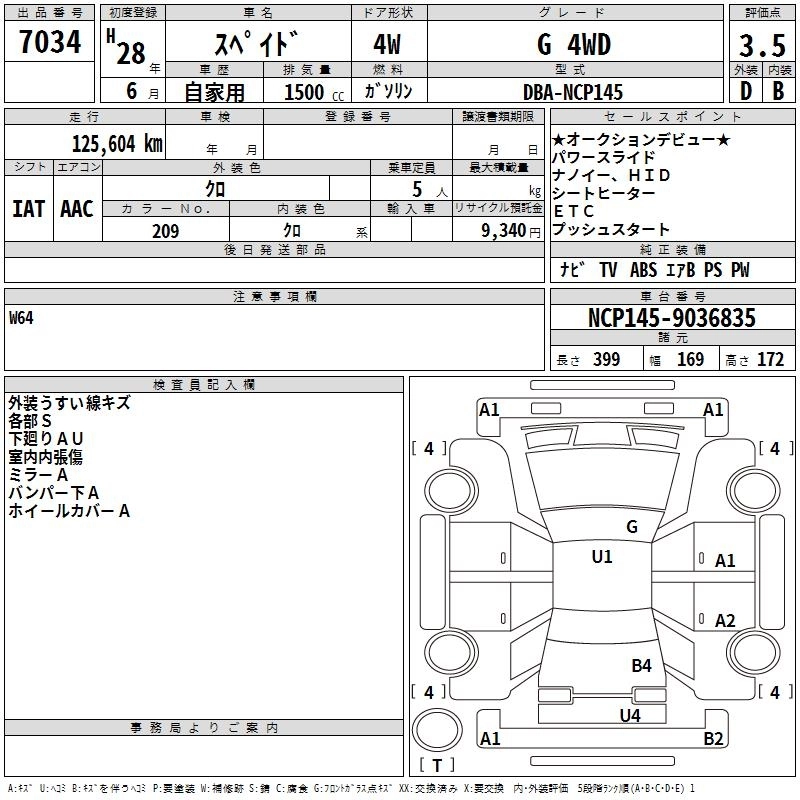 TOYOTA SPADE 2016 г., лот № 7034