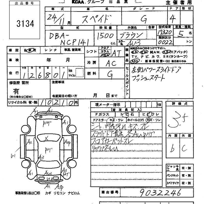 TOYOTA SPADE 2012 г., лот № 3134