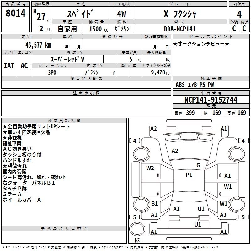 Год выпуска2015 Пробег 47 000 км КузовNCP141 КомплектацияX WELLFARE CAR