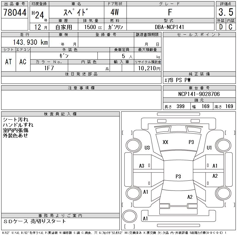 TOYOTA SPADE 2012 г., лот № 78044