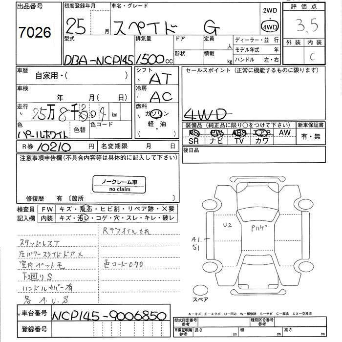 TOYOTA SPADE 2013 г., лот № 7026