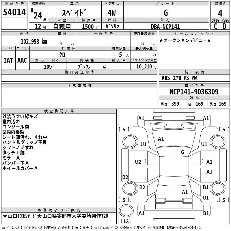 TOYOTA SPADE 2012 г., лот № 54014