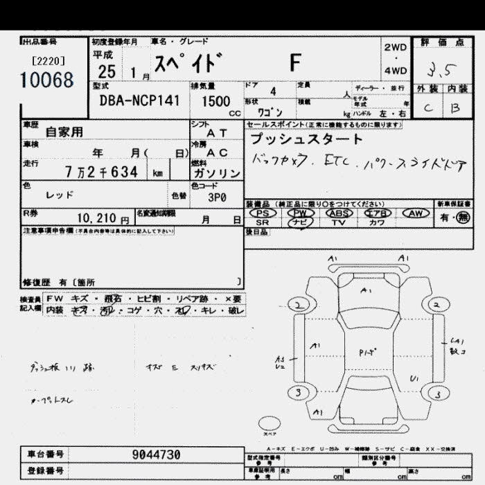 TOYOTA SPADE 2013 г., лот № 10068